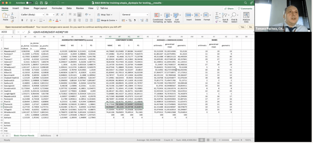 Description: The calculation itself may involve a number of iterations and adjustments, taking into account that results of statistical procedures may require the reassessment of indicators and transformation of data. This session will guide us through all the steps required to calculate the index. The index is calibrated to reflect the best possible outcomes versus the worst, so that scores will direct users to actionable focus points to improve social progress. The scale of SPI is 0-100, with 100 being the best. Utopia and dystopia settings for each indicator requires substantial effort and additional research. Often, national guidelines or international targets such as the SDGs can be used.